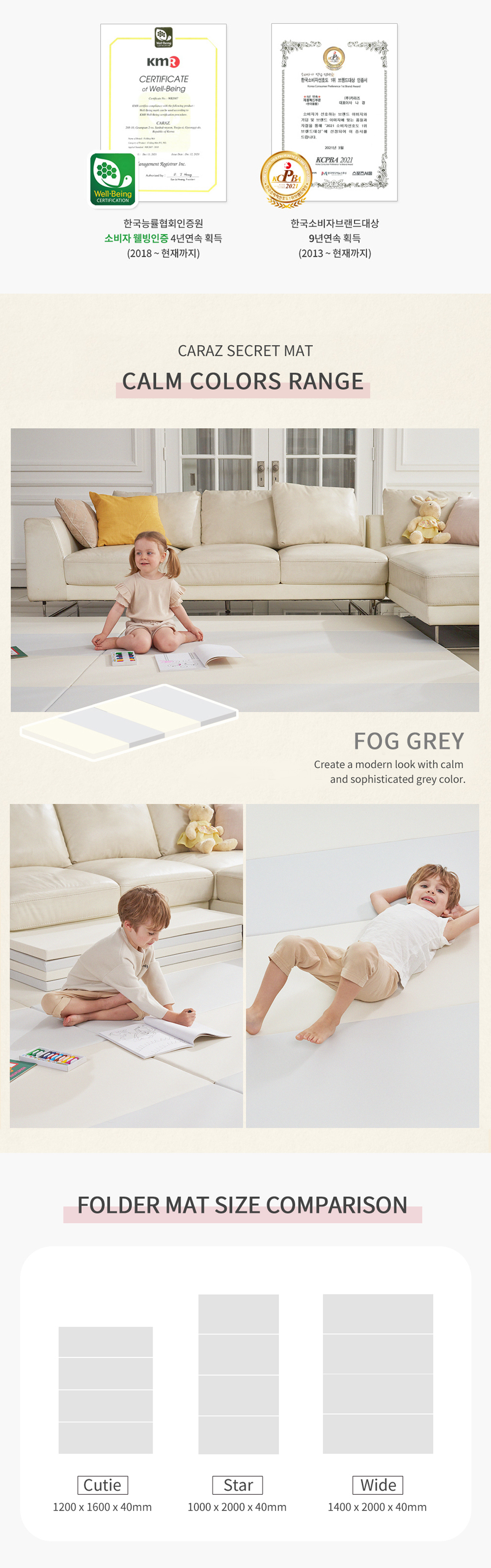 Caraz W4 Folder Mat 160 x 120 x 4cm - Fog Grey