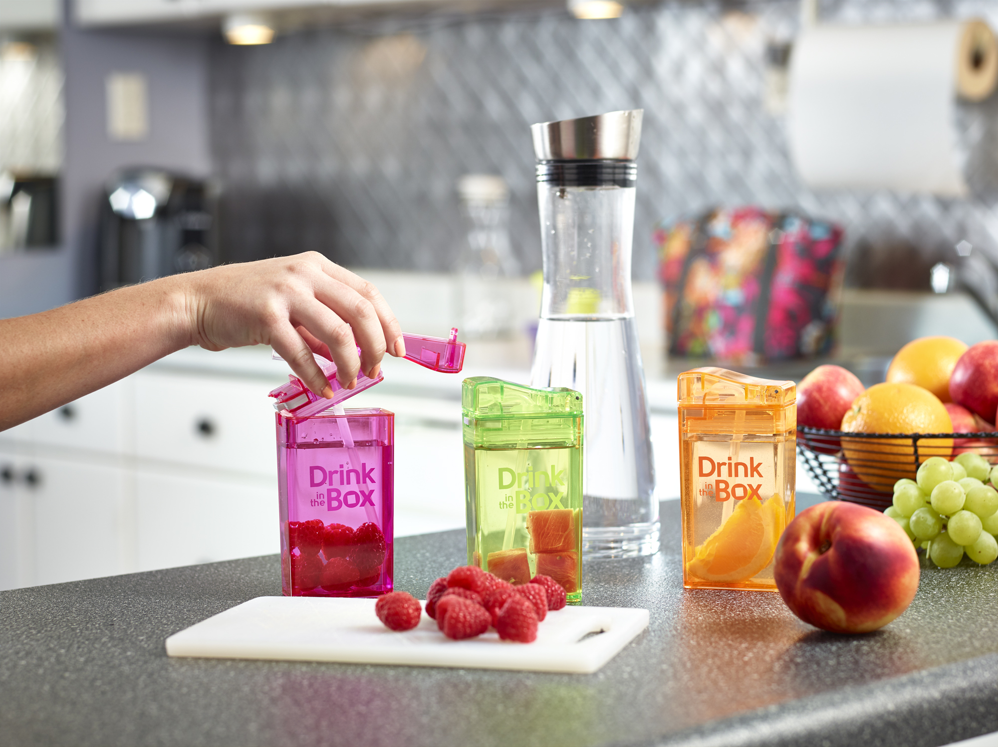 Drink in the Box,是我們獲得專利,屢獲殊榮的可重複使用飲料盒,旨在為父母提供一種方法,以減少孩子在使用每年銷售的 170 億個一次性果汁盒。它現已在北美的 1000多 家零售店中銷售,並通過 20 多個國家的分銷商和不斷增長。