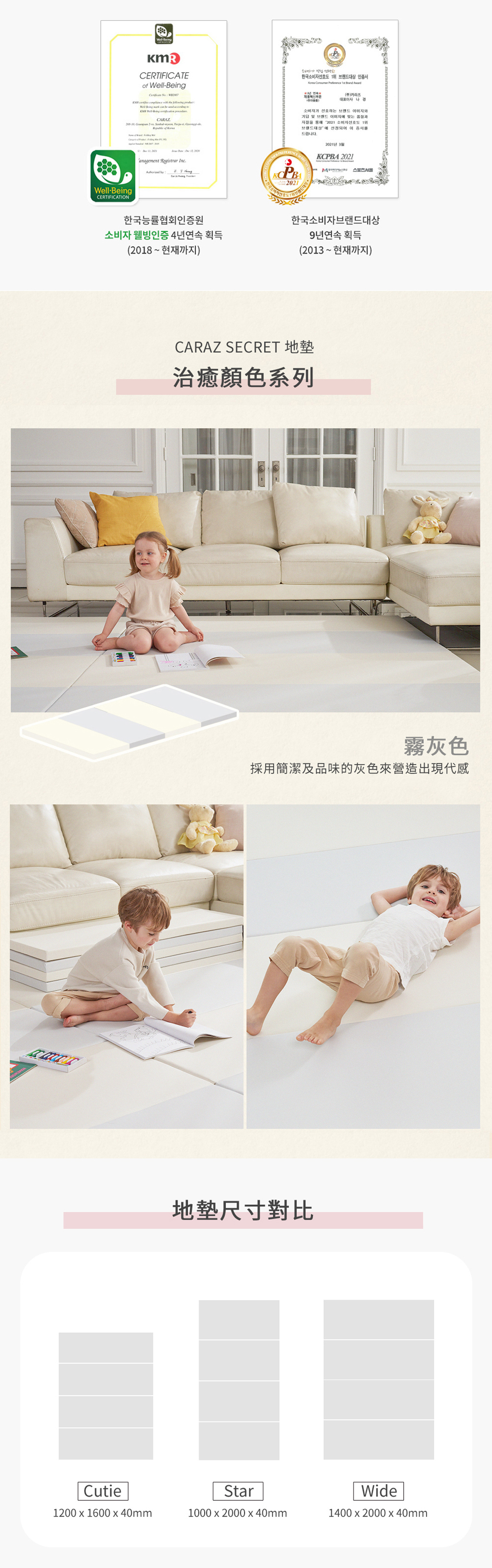 內層: 由8層高密度PE foam組成。不使用化學黏合劑,而使用熱溶合而成,在高溫也不會產生有害物質,使家長放心使用。