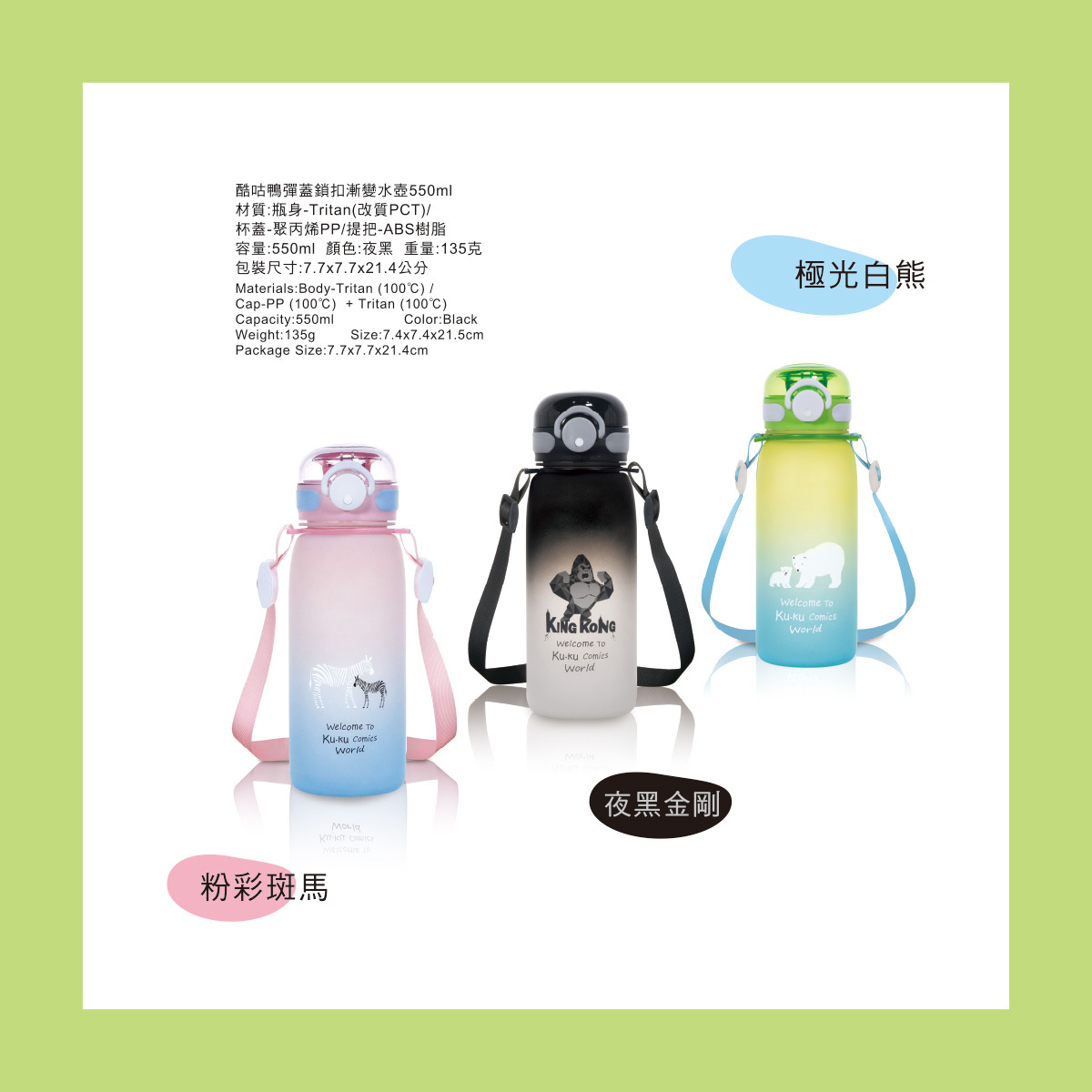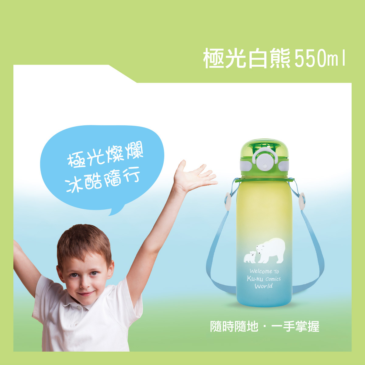 KUKU 彈蓋鎖扣漸變水壺 550ml - 青綠