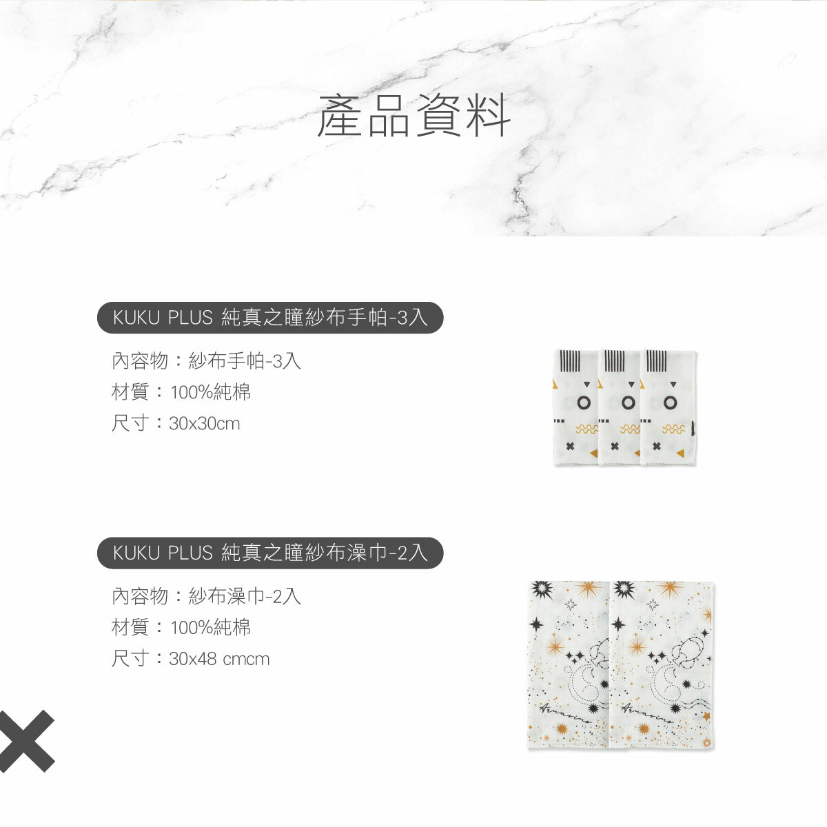 KUKU Plus純真之曈紗布手帕 - 3入